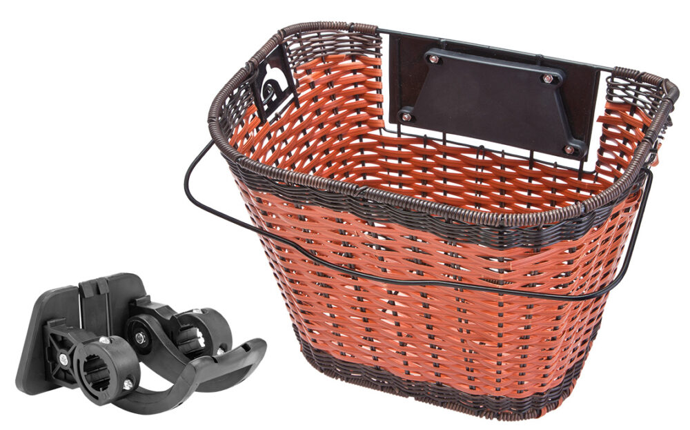 > Велокорзина JL-262 передняя, с быстросъём. крепл., плетёная, сталь/пластик, черно-коричневая арт.27 (арт. 270067)