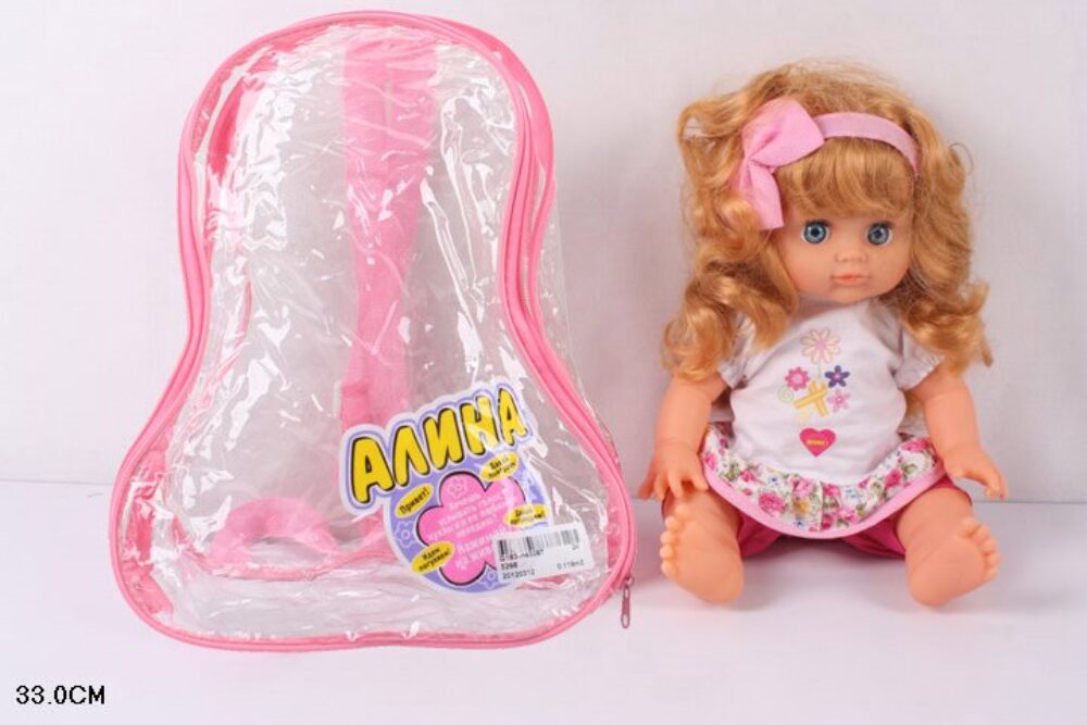 Кукла Алина 5298 кудряшка с бантом 33см в рюкзаке G183-H43087 (арт. У5298)