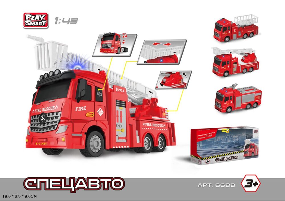 Машина на бат. 6688 пожарная в кор.,звук,свет, подним.стрела Т500-Н65060