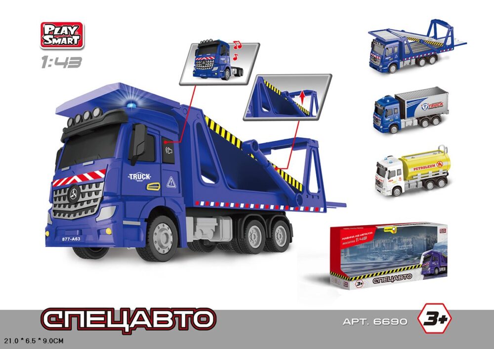 Машина на бат. 6690 автовоз в кор.,звук,свет,платформа поднимается Т500-Н65062 (арт. Р6690)