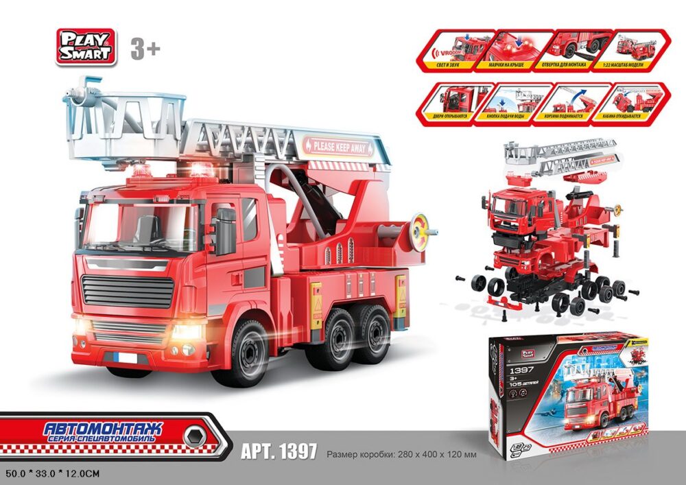 Конструктор Пожарная машина , вода,подн.стрела,кабина в кор.N087-Н26006 (арт. 1397)