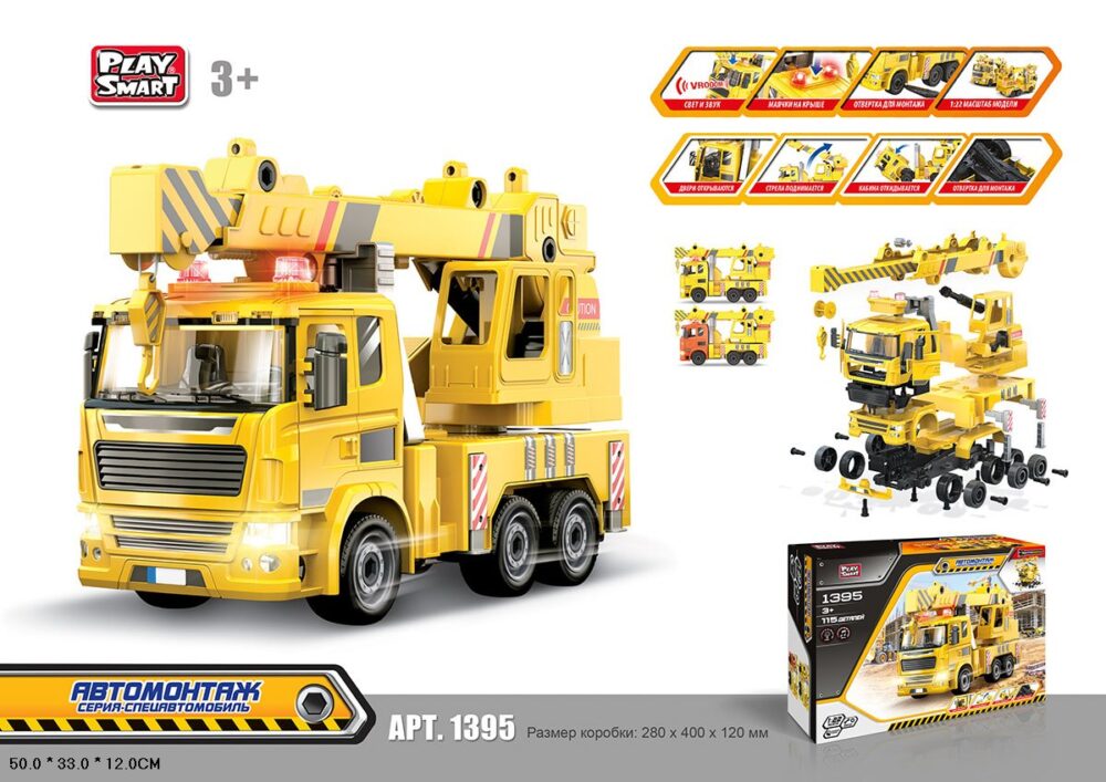 Конструктор автокран,звук,свет,подн.стрела,кабина в кор.N087-Н26008 (арт. 1395)