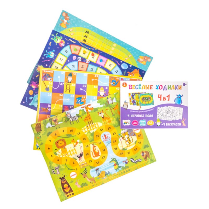 Игра 04931 ходилка настольная "Веселые ходилки 4 в 1" (+4 раскраски) арт.04931