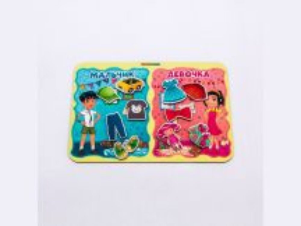 Дерево СОРТЕР какая разница МАЛЬЧИК-ДЕВОЧКА Игрушка состоит из деревянной доски с двумя противоположными тематическими изображениями и комплекта соответствующих фигурок - липучек. Игра с Сортером «Какая разница», с одной стороны, очень проста – нужно (арт
