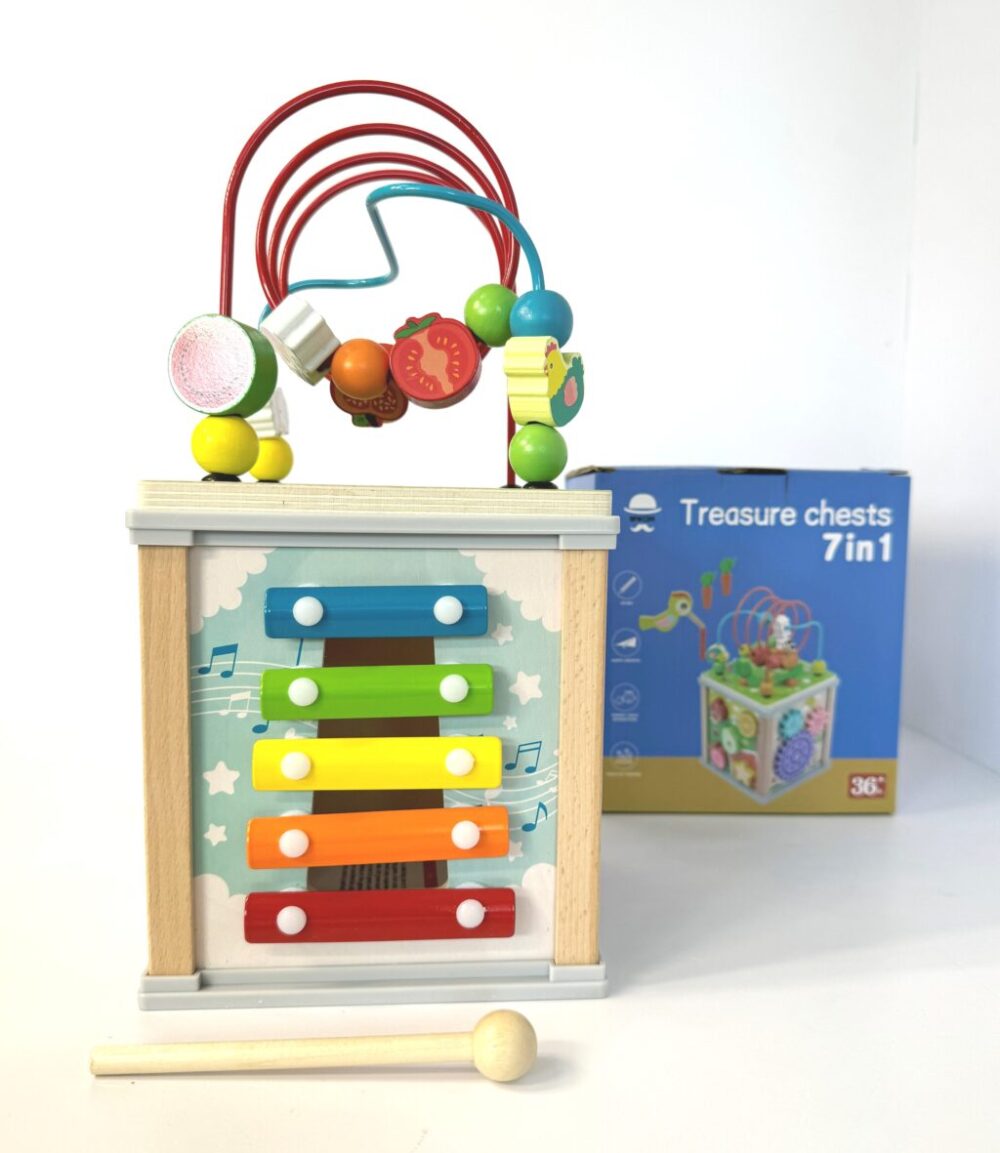 Куб 44768 логический бизиборд деревянный с наполнением в кор.