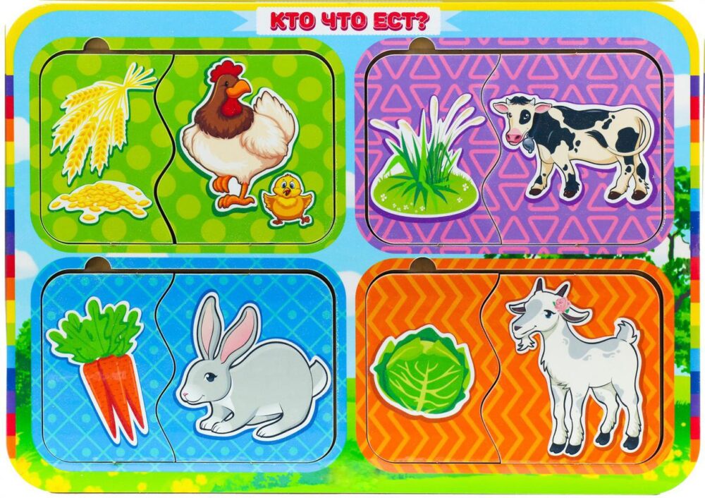 Пазл парный Кто что ест? курица корова заяц коза 012404