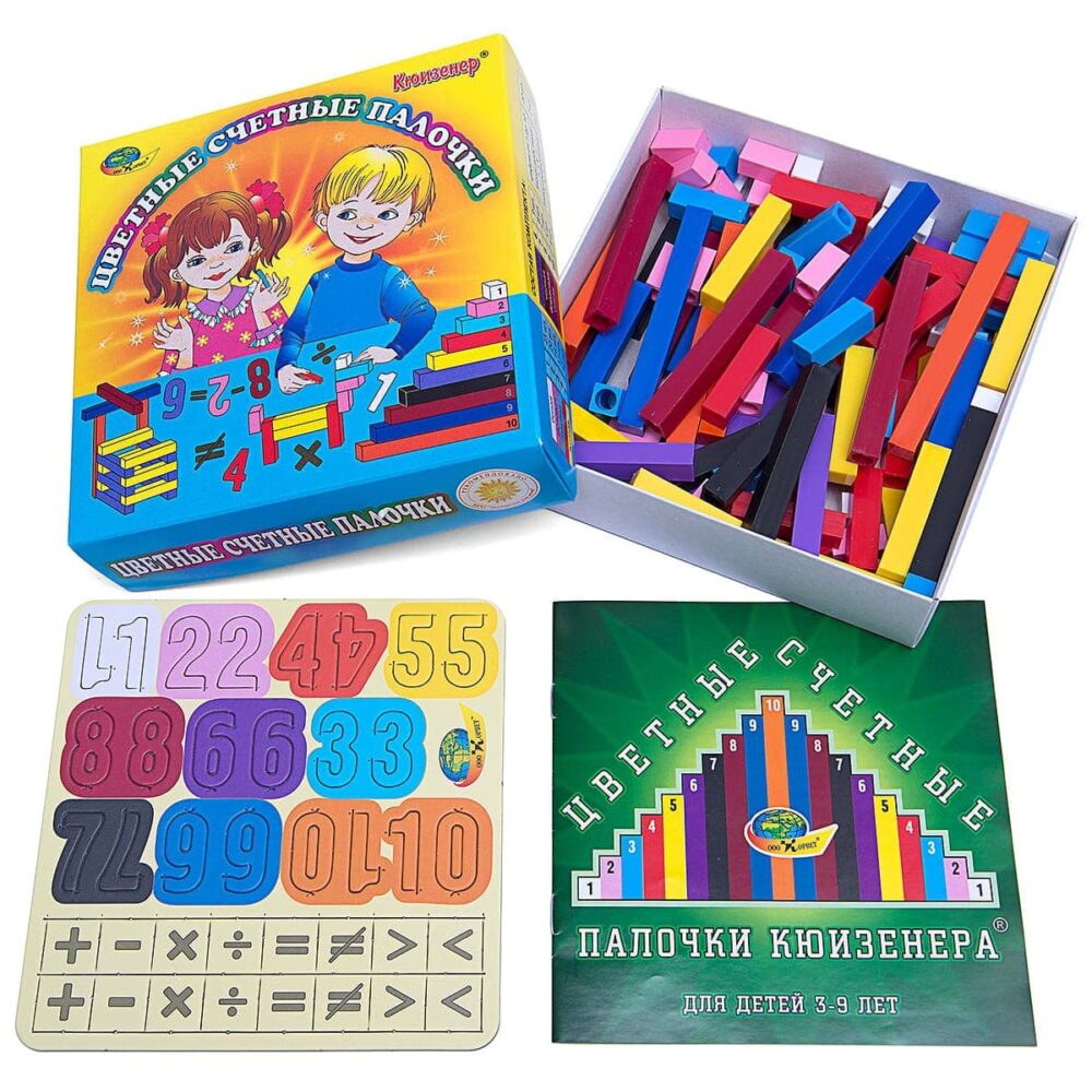 > Палочки Кюизенера счетные цветные Комплект состоит из 116 пластмассовых призм (палочек) 10-ти различных цветов и длин. Каждая палочка – это число, выраженное цветом и величиной. Наименьшая палочка имеет длину 10 мм и является кубом, следующие с после (арт