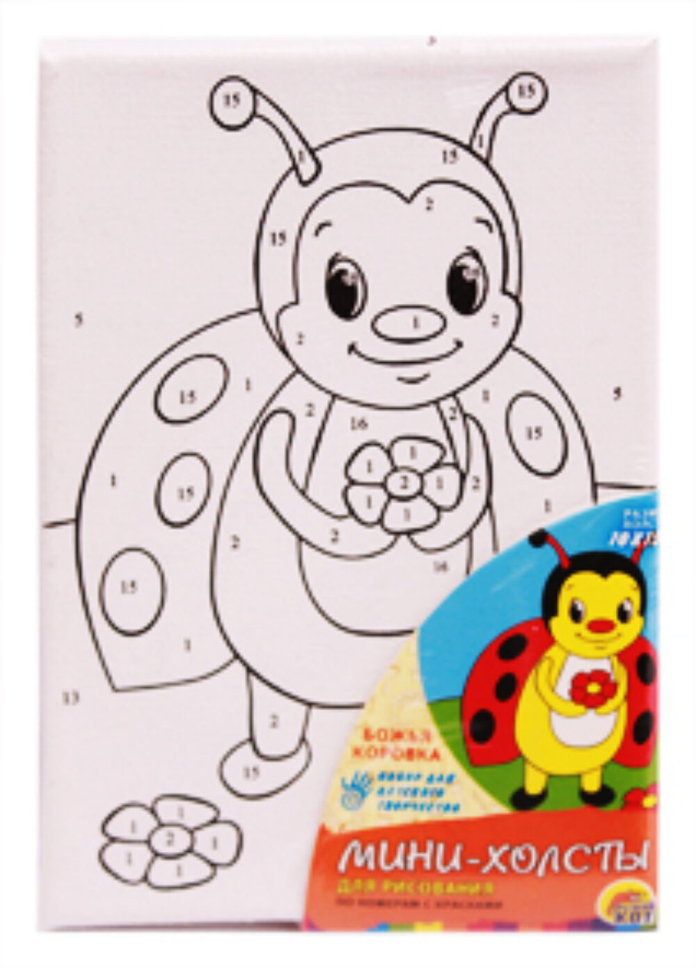 Холст мини 10х15 см по номерам. БОЖЬЯ КОРОВКА