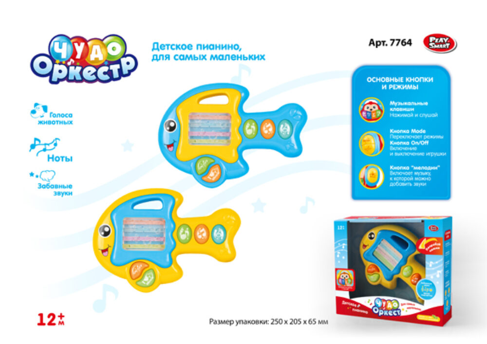 Пианино 7764 рыбка разв.музык.на бат.в кор.для малышей А236-Н25020 (арт. 7764)