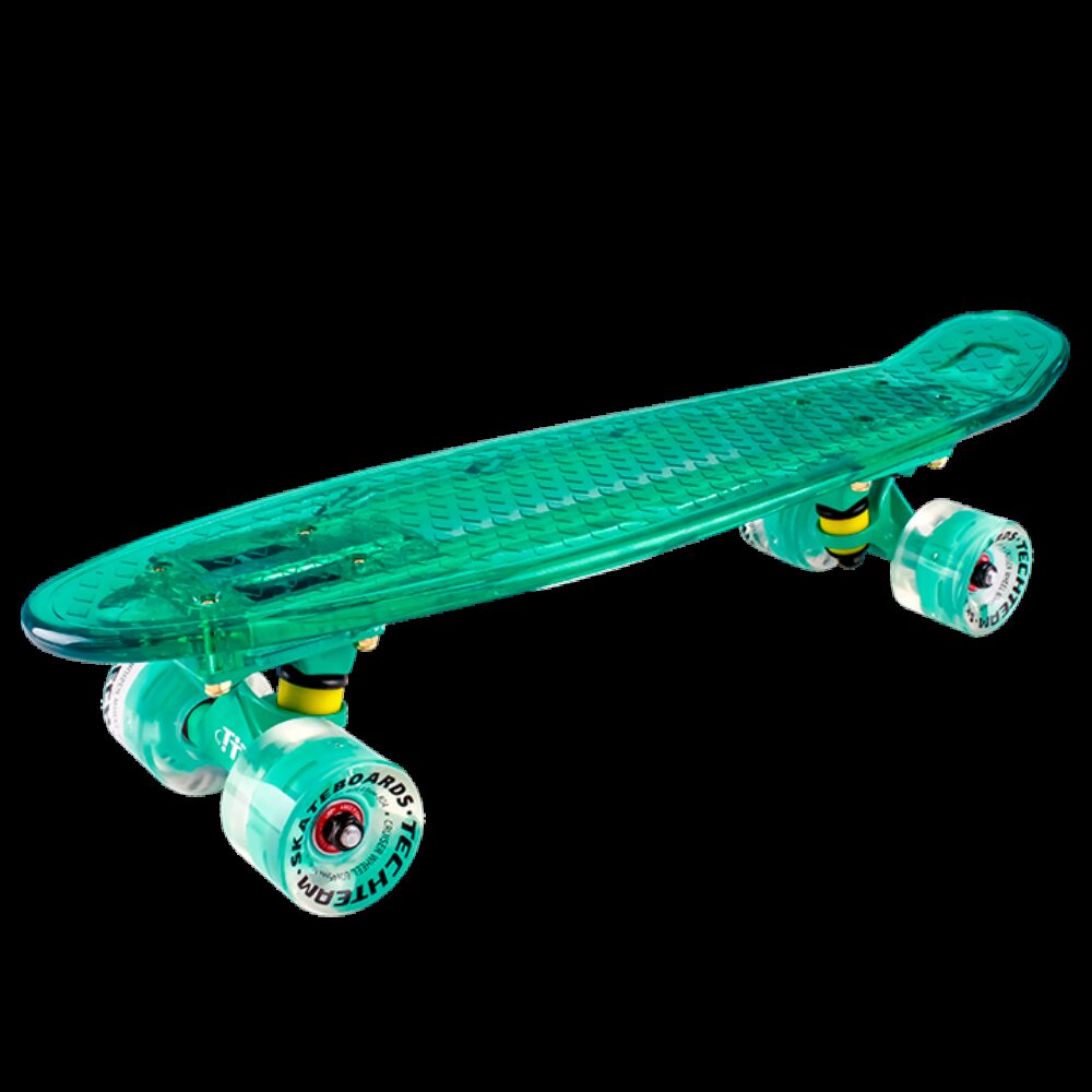 Скейтборд пластиковый Transparent 22 light Материал композит Конкейв малый Шкурка гравировка Длина 56 см Колеса Диаметр 60 мм Материал полиуретан Предназначение круизинг Подвеска Материал траков алюминий Ширина траков 8 см Обратный кингпин нет