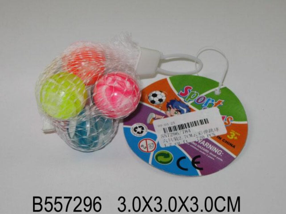 Мяч 6шт. 2,7см. с животными каучуковые в сеточке 784