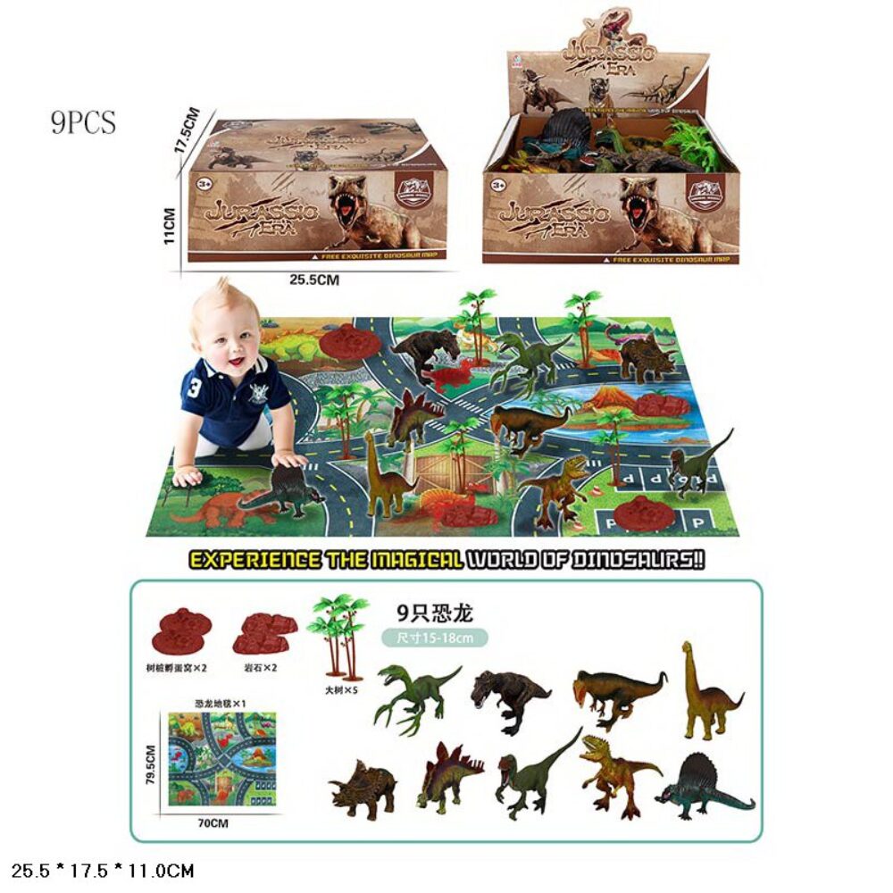 Динозавры набор 9шт.в кор.с картой и растительностью L70-Н42078 цена за набор!