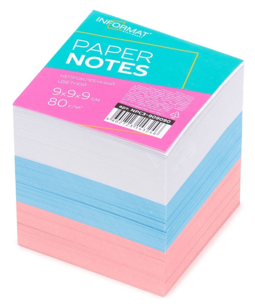 Блок д/зап. INFORMAT 9х9х9 см Куб не прокл. триколор пастель 80 г/м2 (арт. Кан215430)