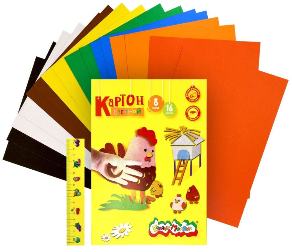 Картон цветной 08цв 16л КМ КЦКМ16 немелованный