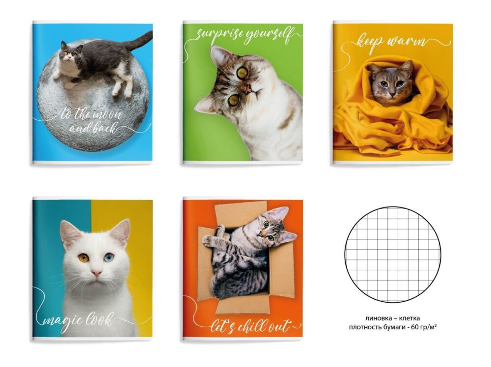 Тетрадь 48 л. кл. скреп. Schoolformat ЯРКИЕ КОТИКИ А5 мел. карт. спл. Уф-лак офс. (арт. кан228637)