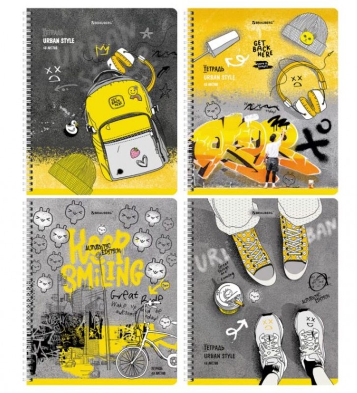 Тетрадь 48л. А5 BRAUBERG гребень, клетка, обложка картон, "Urban Style" (4вида в спайке), 404338 (арт. С404338)