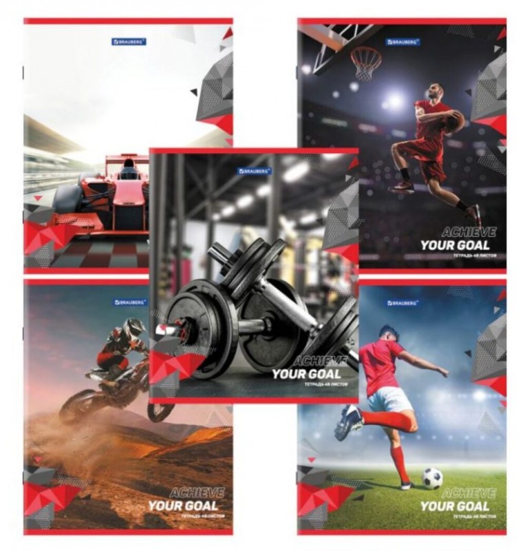Тетрадь 48л. А5 BRAUBERG скоба, клетка, обложка картон, "Sport Club" микс 10 в спайке (арт. С404363)