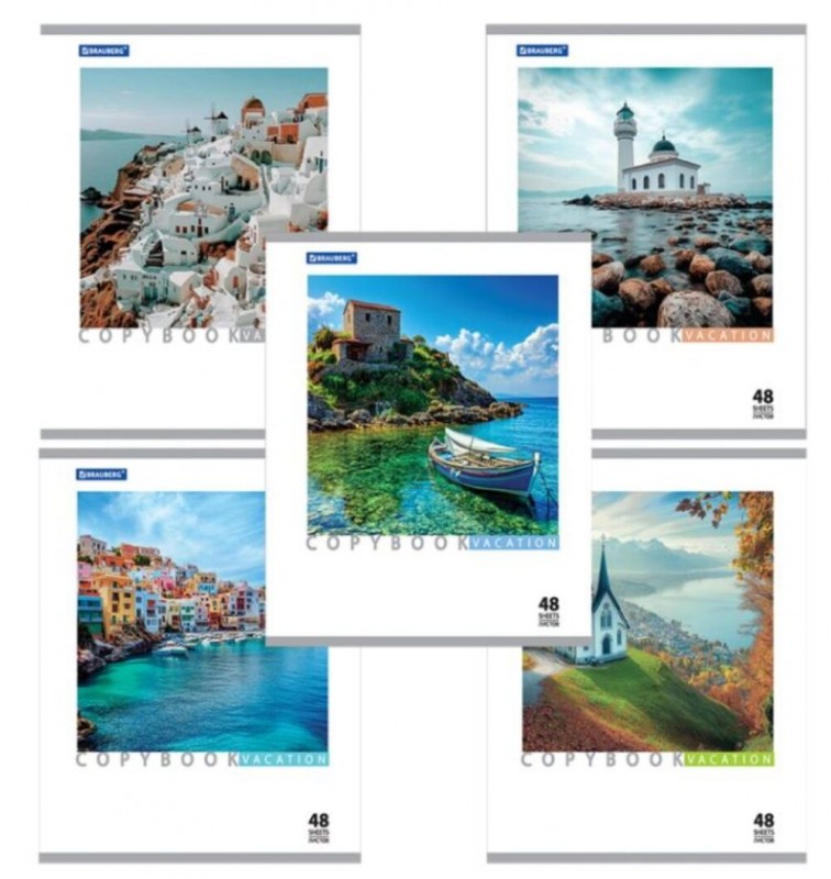 Тетрадь 48л а5 BRAUBERG скоба, клетка,обложка картон, КАНИКУЛЫ