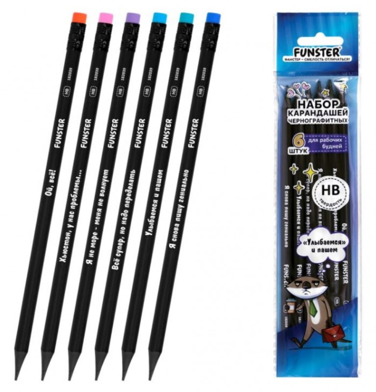 Карандаш 6шт. Набор карандашей чернографитных c забавной надписью FUNSTER (ФАНСТЕР) FUNN NOTES