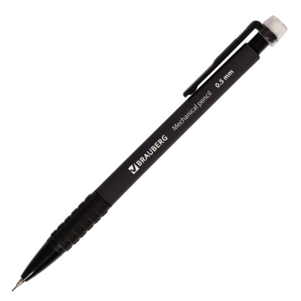 Карандаш механический 0,5 мм, BRAUBERG "Comfort", ластик, резиновый грип, корпус черный, 180284 (арт. С180284)