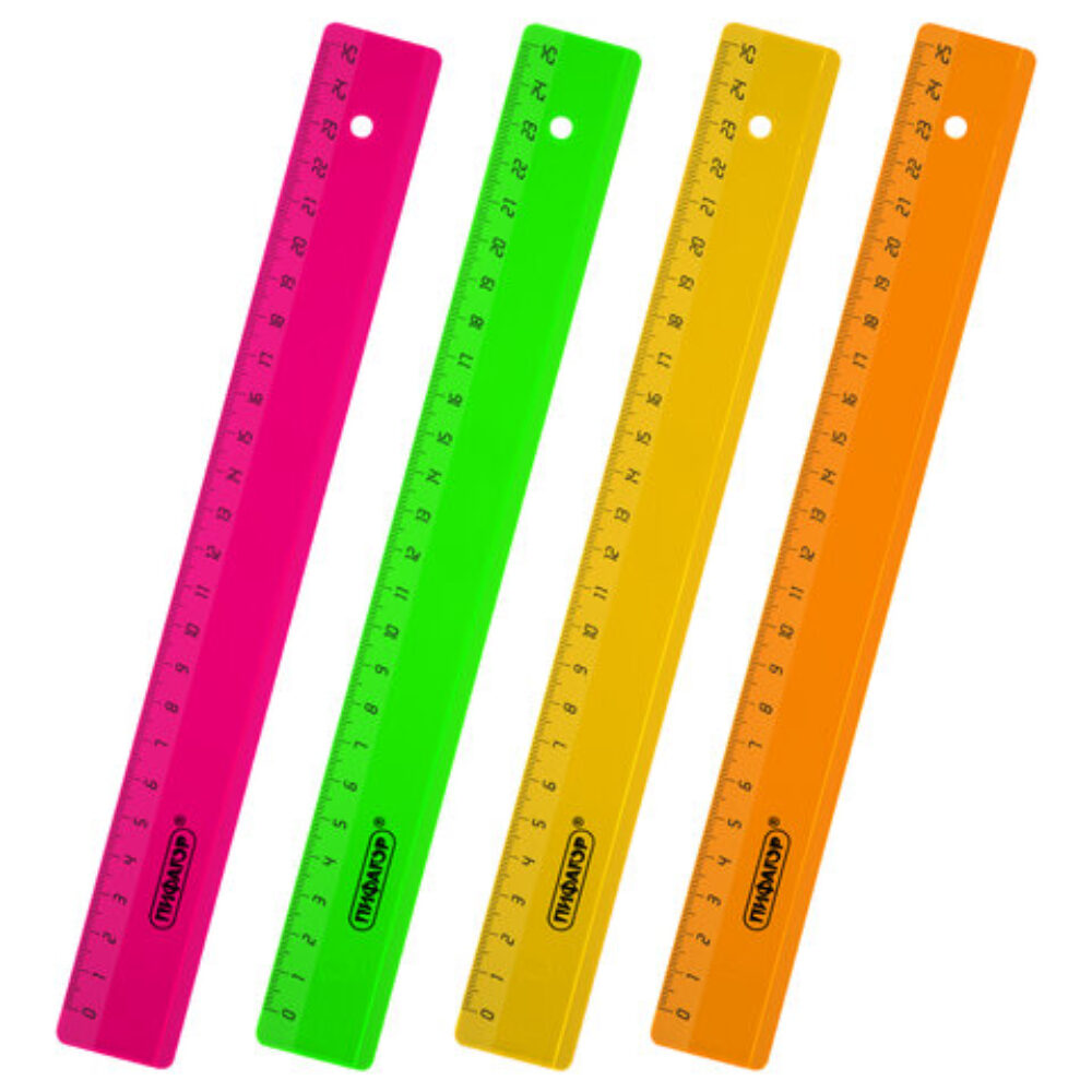 Линейка 25см. пластиковая ПИФАГОР, прозрачная, неоновая, ассорти, 210791