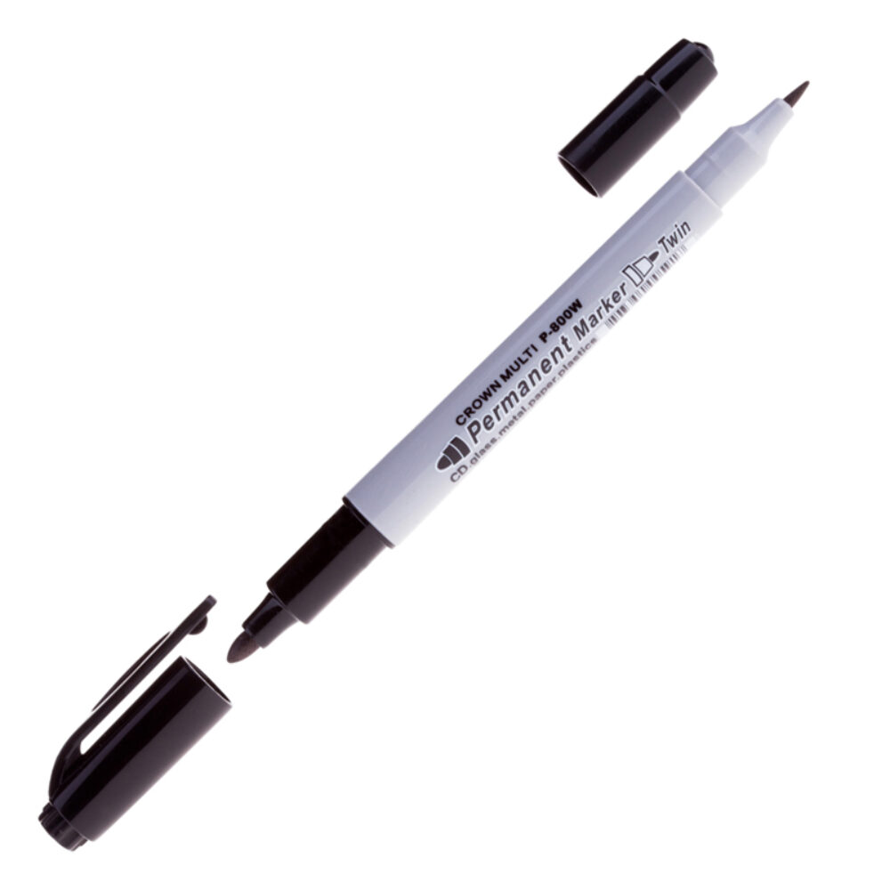 Маркер 1-2мм перманентный двухсторонний Crown "Multi Marker Twin" черный, пулевидный P-800W 1/12