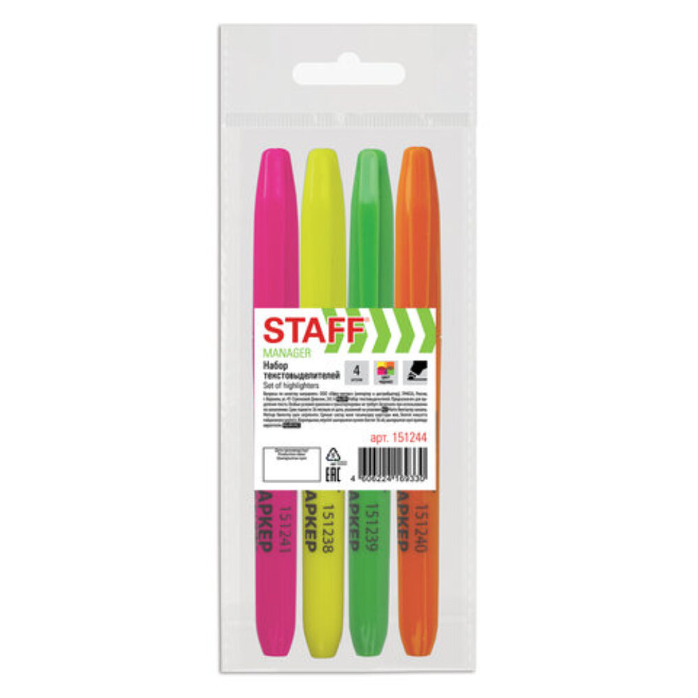 Набор текстовыделителей STAFF "Manager" HL-238, 4 шт., АССОРТИ, линия 1-3 мм, 151244 (арт. С151244)