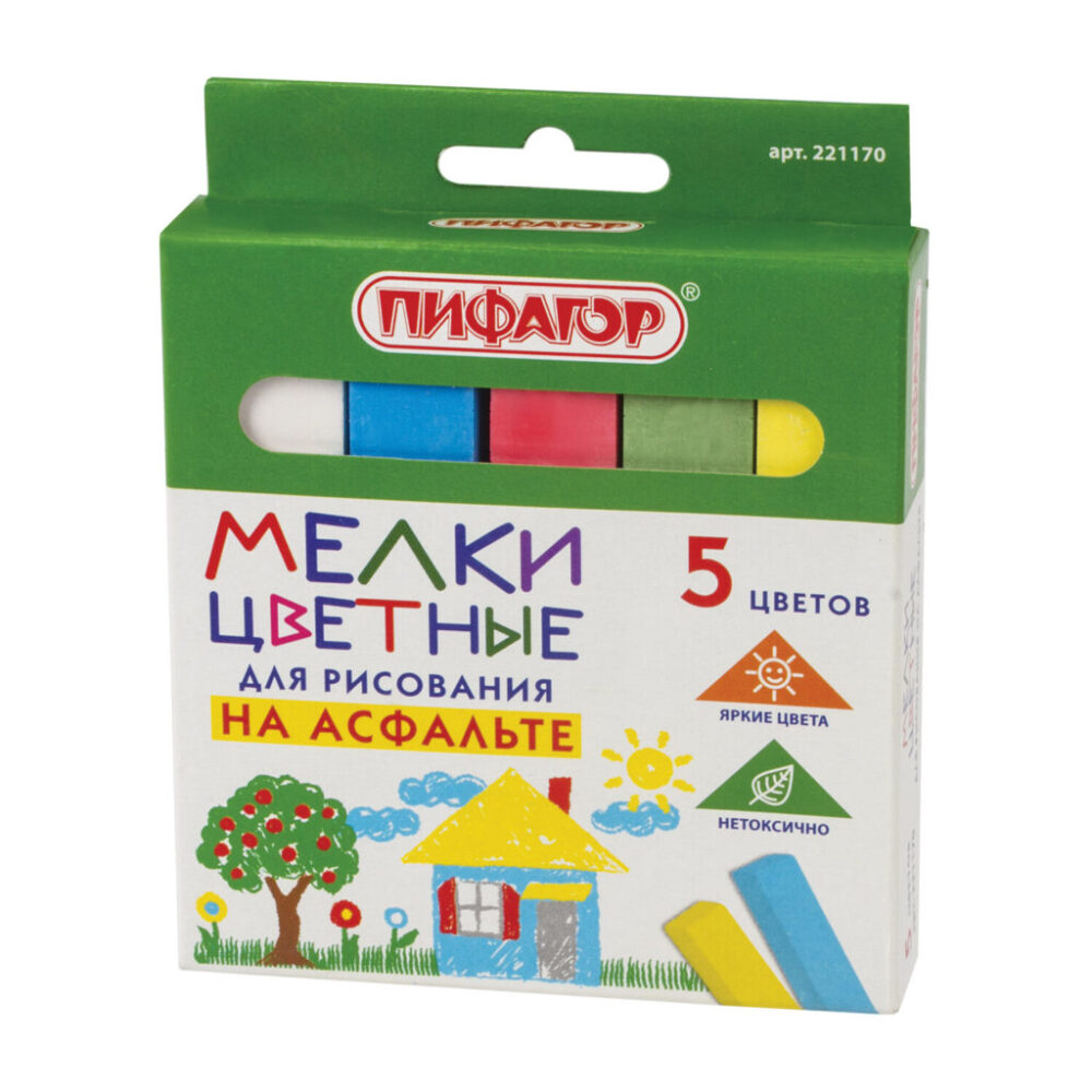 Мел для рисования на асфальте 5шт цветной квадратный, ПИФАГОР,картонная упаковка, европодвес (арт. С221170)