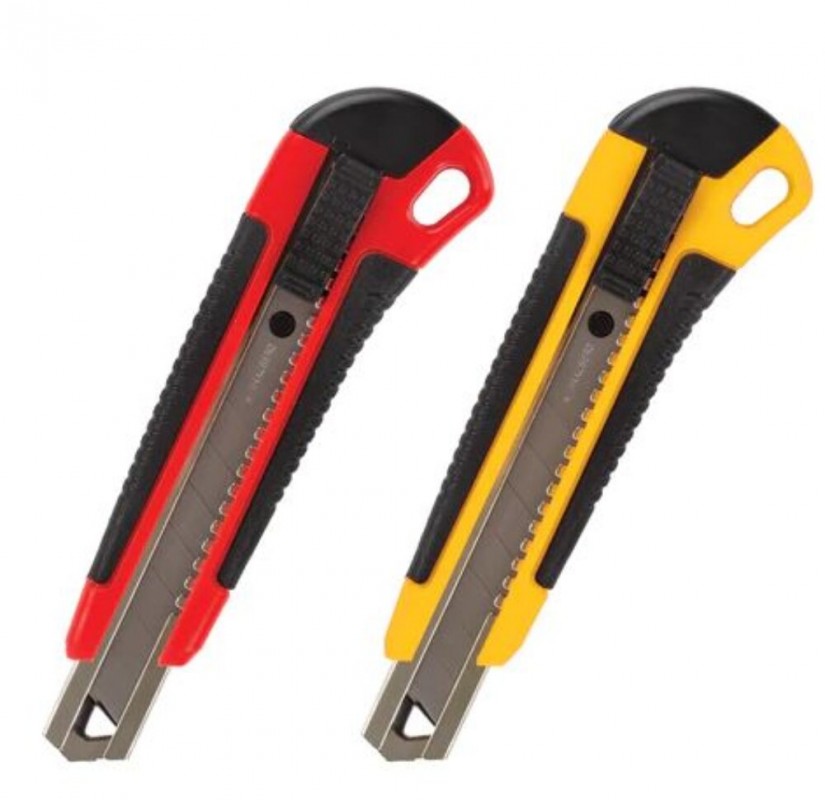 Нож канцелярский 18 мм BRAUBERG "Universal", 3 лезвия в комплекте, автофиксатор, резиновые вставки, 230919 (арт. С230919)
