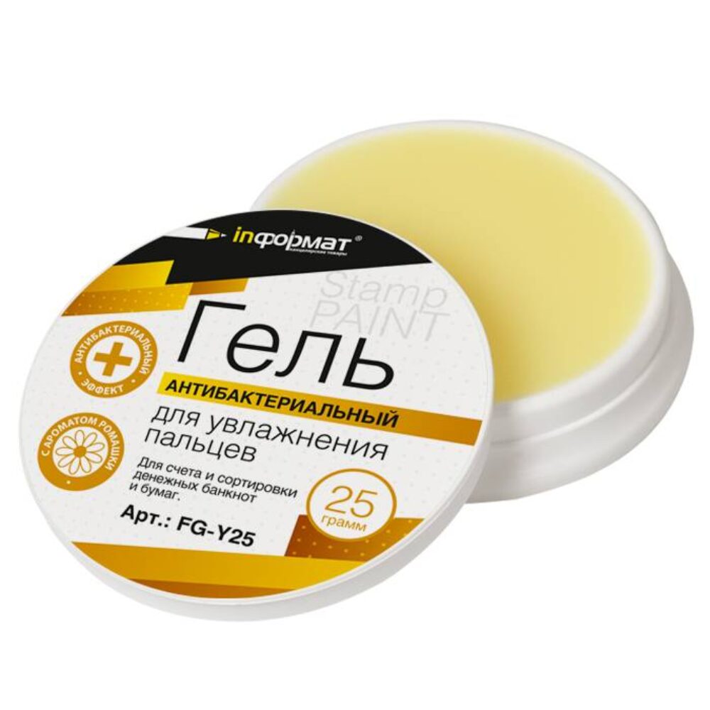Гель для увлажнения пальцев inФОРМАТ 25 г, антибактериальный, желтый, с ароматом ромашки (арт. Кан191072)