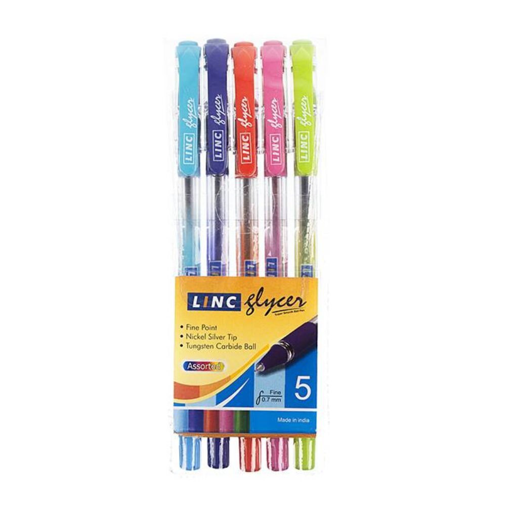 Набор шарик.ручек LINC GLYCER 0,7 мм 5 цв. ассорти резин.грип