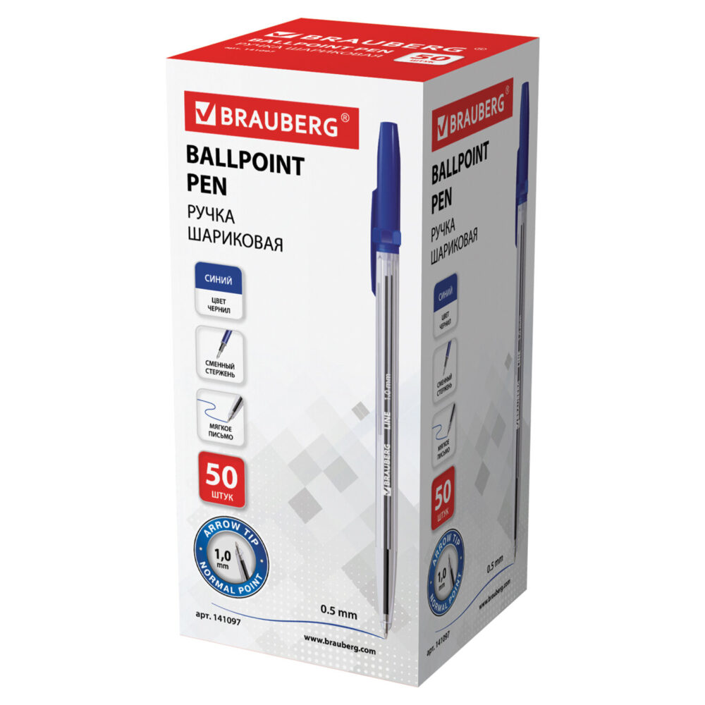 Ручка 141097 шариковая BRAUBERG "Line", СИНЯЯ, корпус прозрачный, узел 1 мм, линия 0,5 мм (арт. С141097)