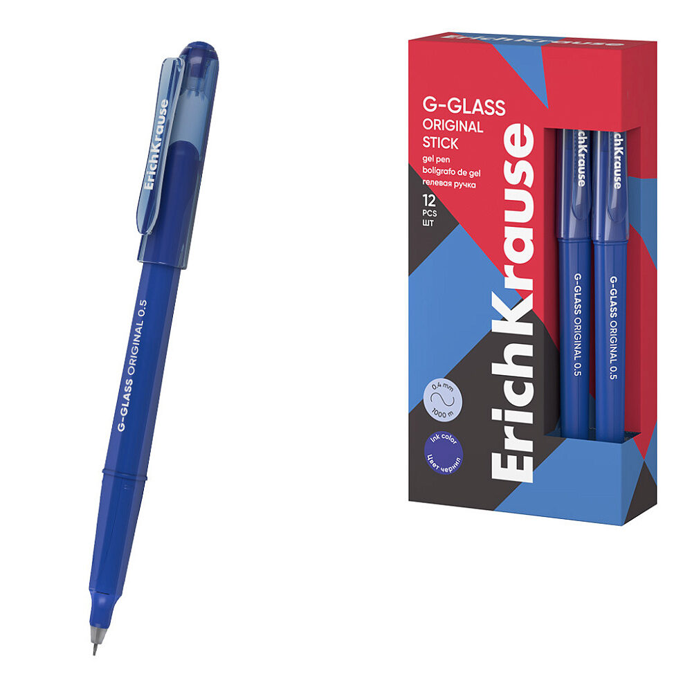 Ручка гелевая ErichKrause G-Glass Stick Original 0.5, цвет чернил синий (в коробке по 12 шт.) (арт. Э61301)