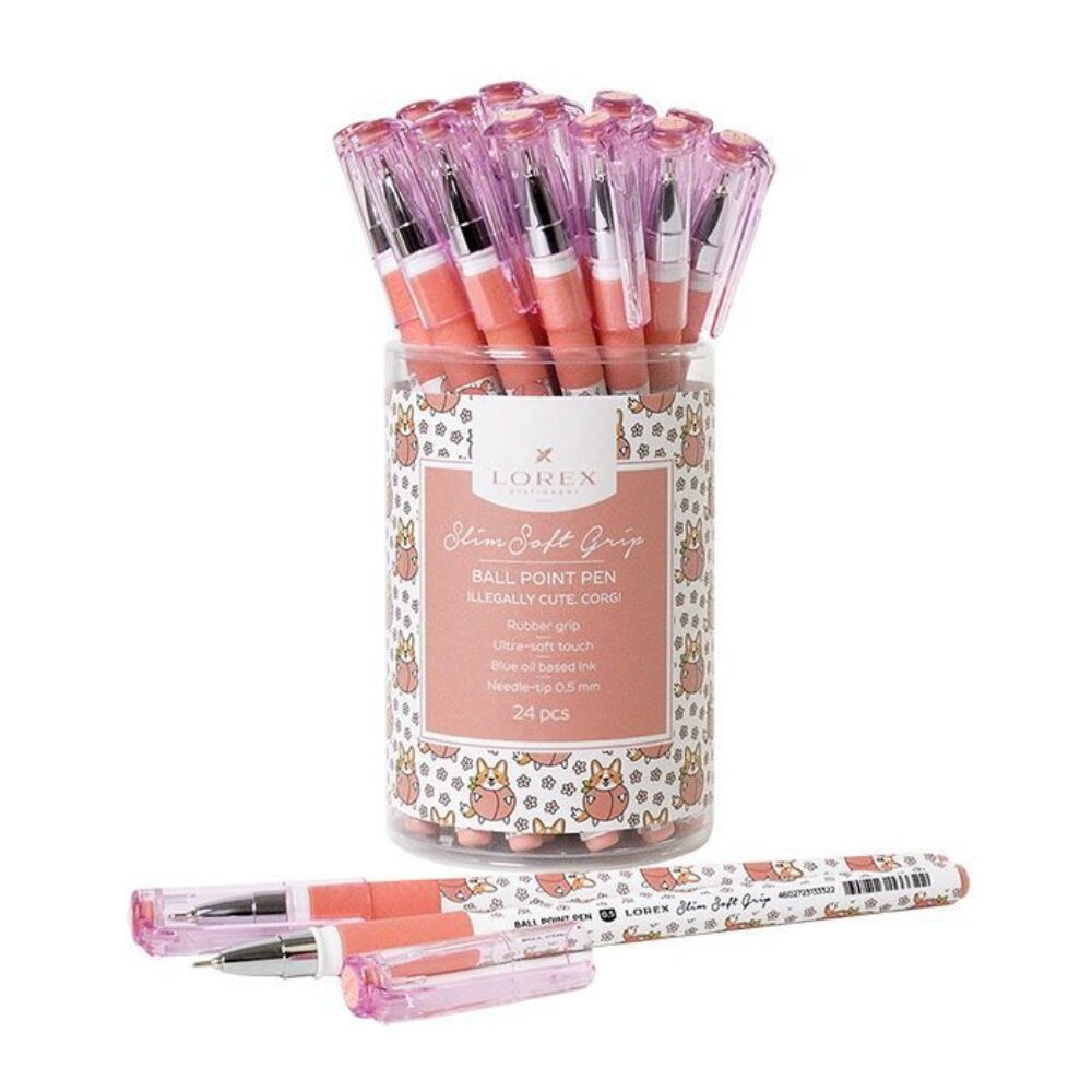 Ручка маслян. LOREX ILLEGALLY CUTE CORGI серия Slim Soft Grip 0,50 мм синий резин.грип кругл. прорез (арт. Кан204814)