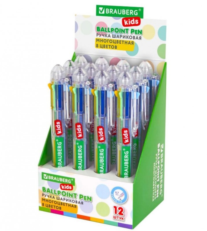 Ручка многоцветная шариковая автоматическая 8 ЦВЕТОВ, узел 0,7 мм, в дисплее, BRAUBERG KIDS, 143937 (арт. С143937)