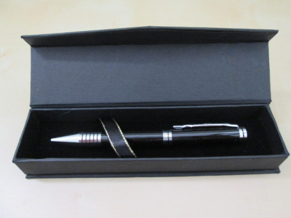 Ручка в подарочной упаковке черная +серебро тонкая ВР626