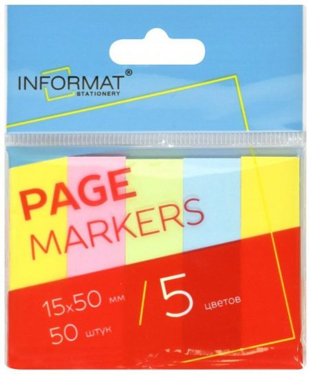 Закладки клейкие INFORMAT 15х50 мм 50 шт 5 цв. ассорти пастель бумажн., Z1550-5P