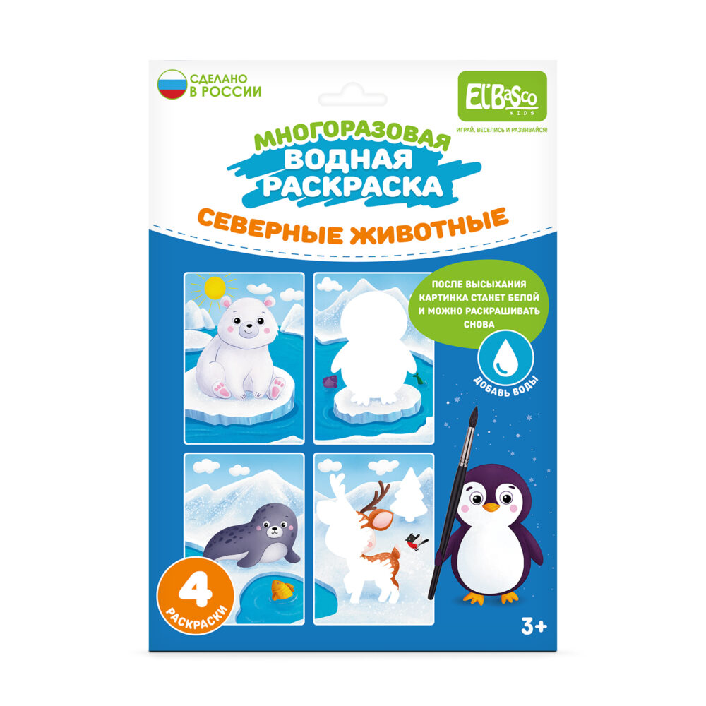 РАСКРАСКА ВОДОЙ НАБОР "Северные животные"