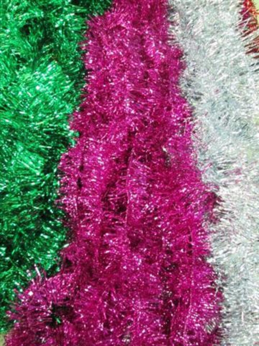 Мишура 6162 2м.7см.,серебро, красная, зеленая, син, золот, роз.10