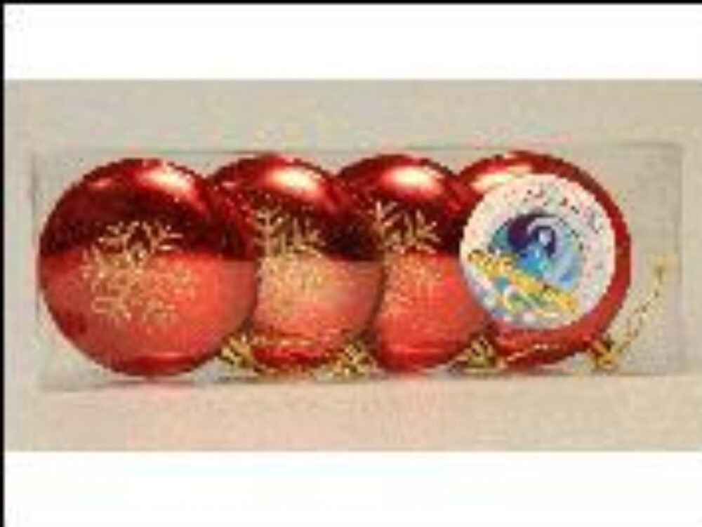 Шар новогодний 9см. 4шт. золото,красный под блистером ПЛОСКИЕ
