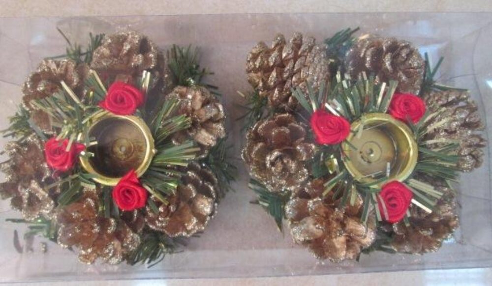 Подсвечник 2шт. 9см. в пластике с обсыпанными шишками