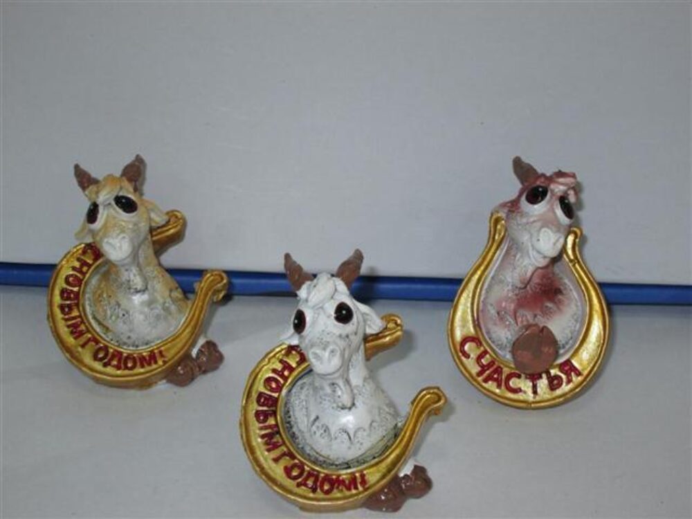 Сувенир Коза в подкове С Новым Годом 4 вида 6073 8шт.уп.