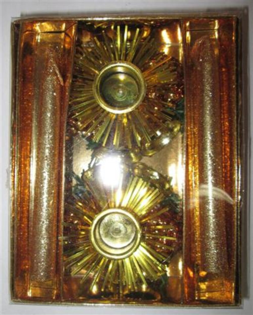 Свеча 2шт.с подсвечниками в кор.с обсыпкой золото АУJ-800532 (арт. КР5833)