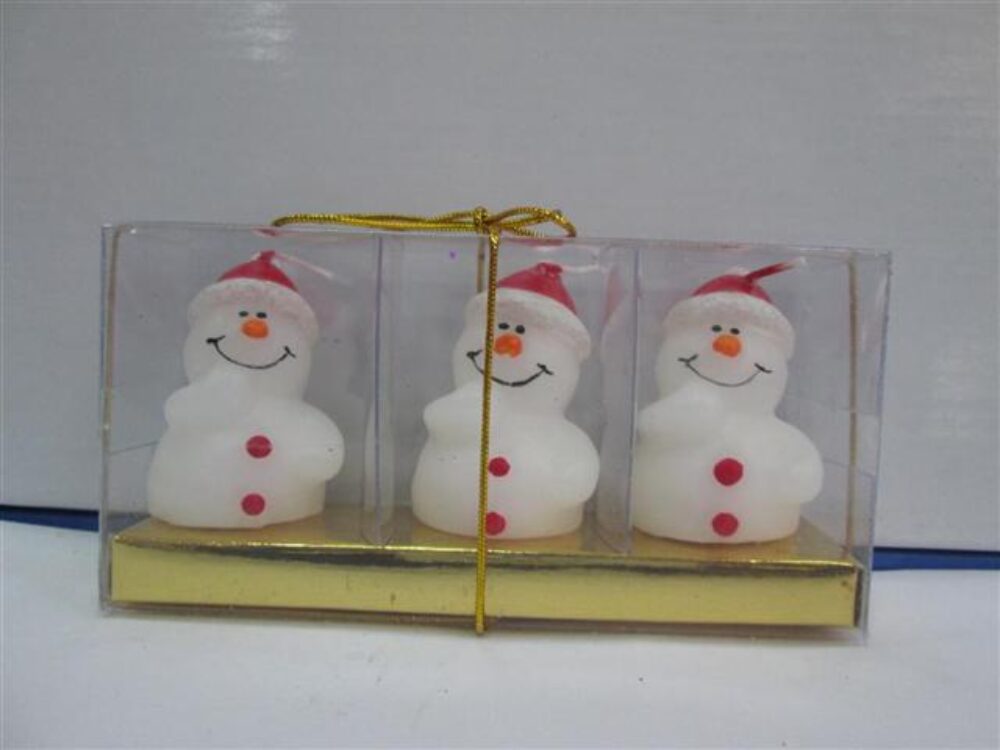 Свеча 3шт. снеговичок в кор подарочные 1034